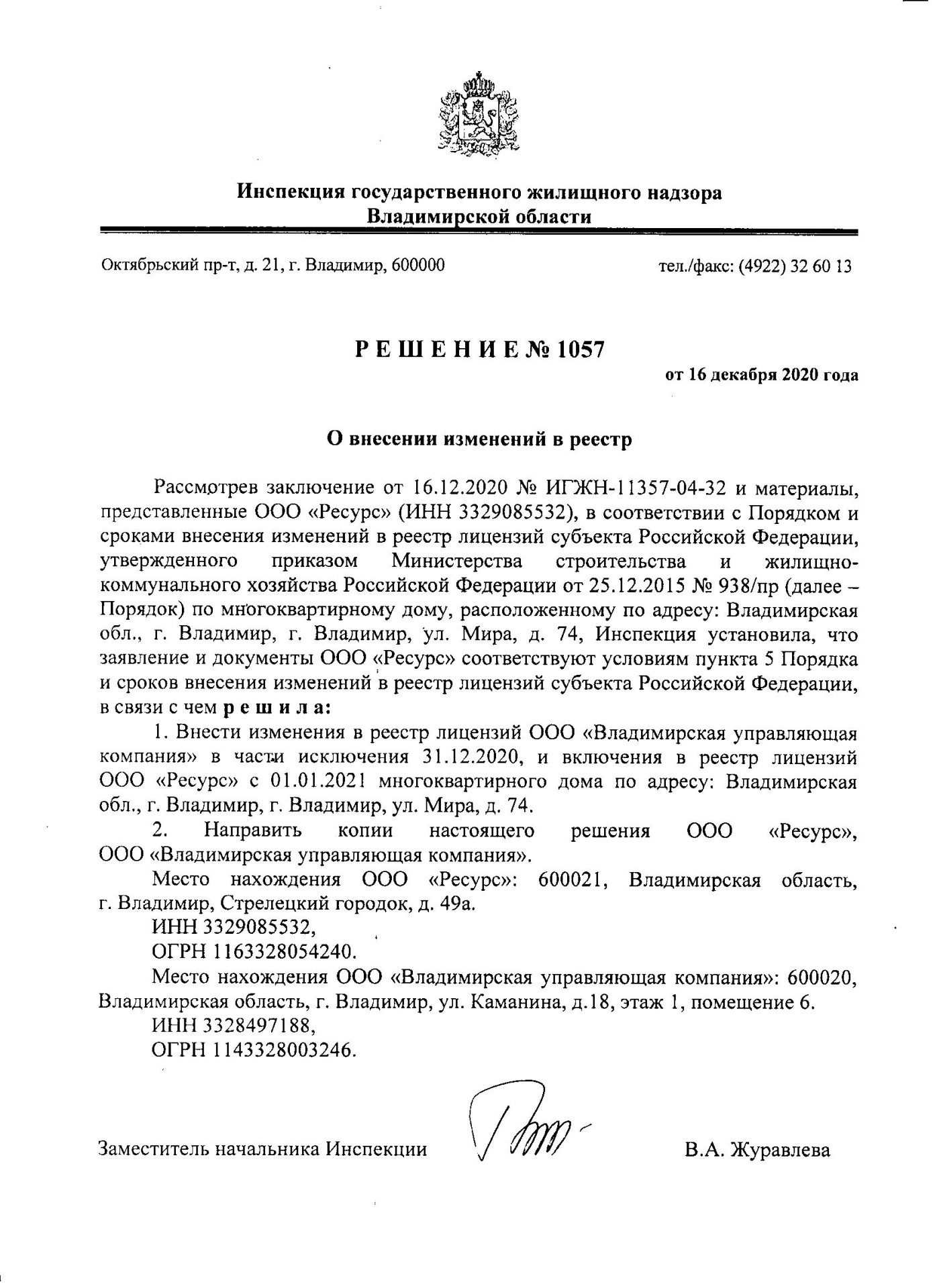 600007, Владимирская обл, г. Владимир, ул. Мира, д. 74